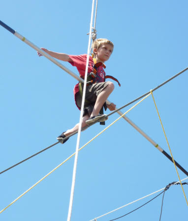 installé au-dessus du câble de marche. Les élèves-funambules sont accrochés à ce câble.